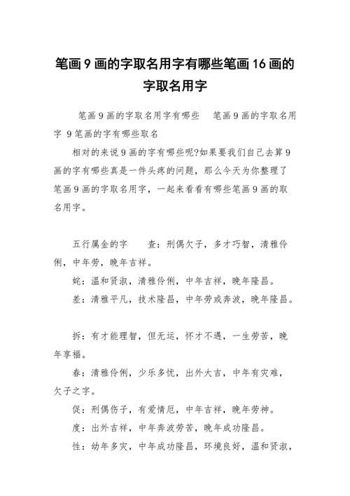 9 画字解起名9 画名也是父母起宝宝名字时常用的方法。现在很多家长都选择了9 画名可以保证宝宝在出生之初就有良好的道德、文化、思想等素质。9 绘画命名也是婴儿命名的重要方法。它可以确保儿童的“八字”科学合理,更有利于儿童未来的发展。因此,越来越多的父母正在接受和使用这种命名方法。