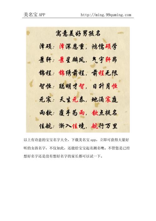 婴儿有很多名字,但选择一个具有良好意义的名字并不容易。这就要求父母对孩子的未来有一定的想法和希望。在选择合适的名字时,他们会遵循这个想法或想法。因此,以下是一些婴儿的名字,我希望它能帮助你。